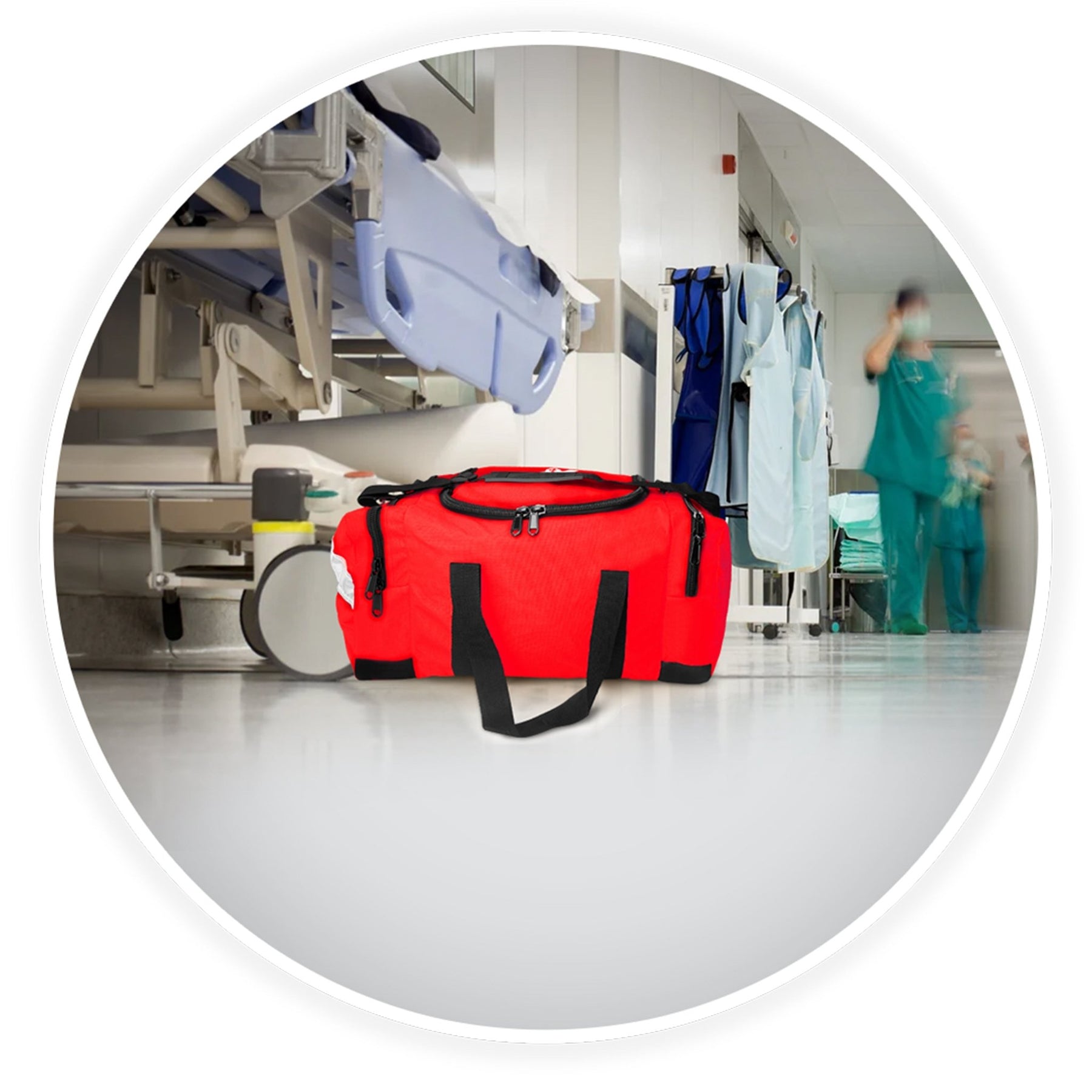 Maximum Storage for Critical Care The ASA Techmed Deluxe EMS Trauma Bag is built for professionals who need a comprehensive mobile medical station. Measuring a spacious 21" x 12" x 9", this large first responder bag accommodates extensive Advanced Life Support (ALS) and Basic Life Support (BLS) equipment while remaining compact enough for rapid transport.