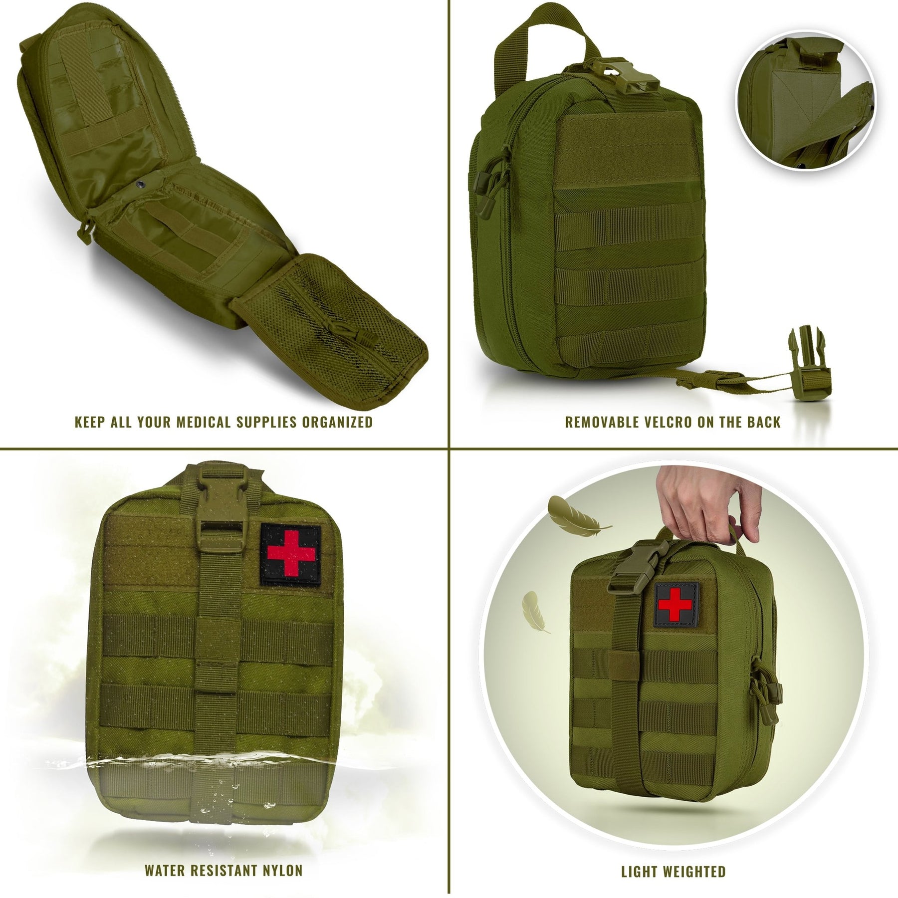 Rapid Rip-Away Deployment When seconds matter, you can't waste time unthreading clips. This pouch features a Velcro tear-away back panel that allows you to instantly detach the entire kit from your vest, belt, or pack to render aid immediately.