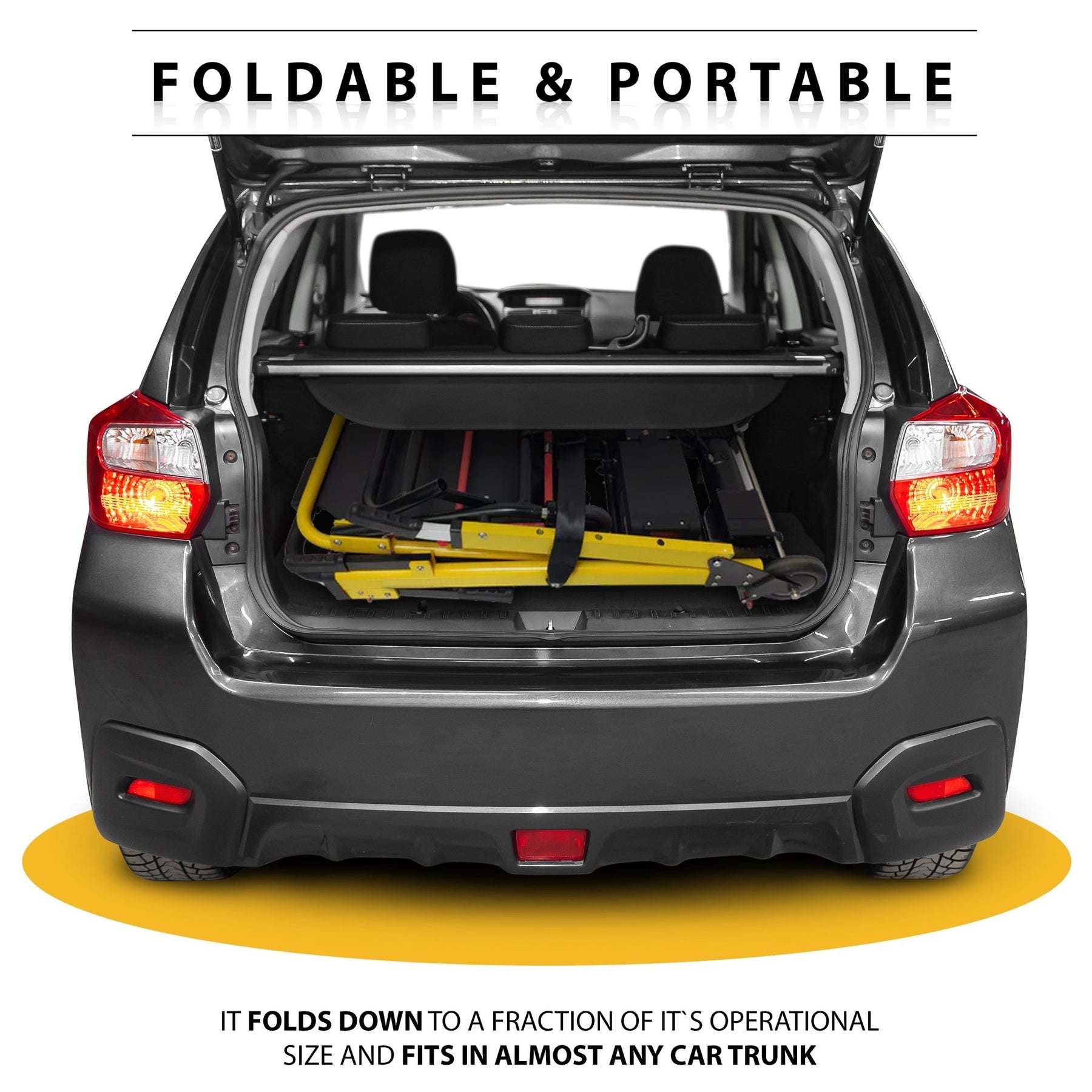 Heavy-Duty Construction Built on a sturdy 2-inch welded tubular frame, this chair is engineered to support up to 400 lbs while maintaining a lightweight profile of just 22 lbs. This high strength-to-weight ratio reduces physical strain on rescuers. The chair rolls smoothly on 4.5-inch rear wheels equipped with dual brakes for stability during transfer on flat surfaces.
