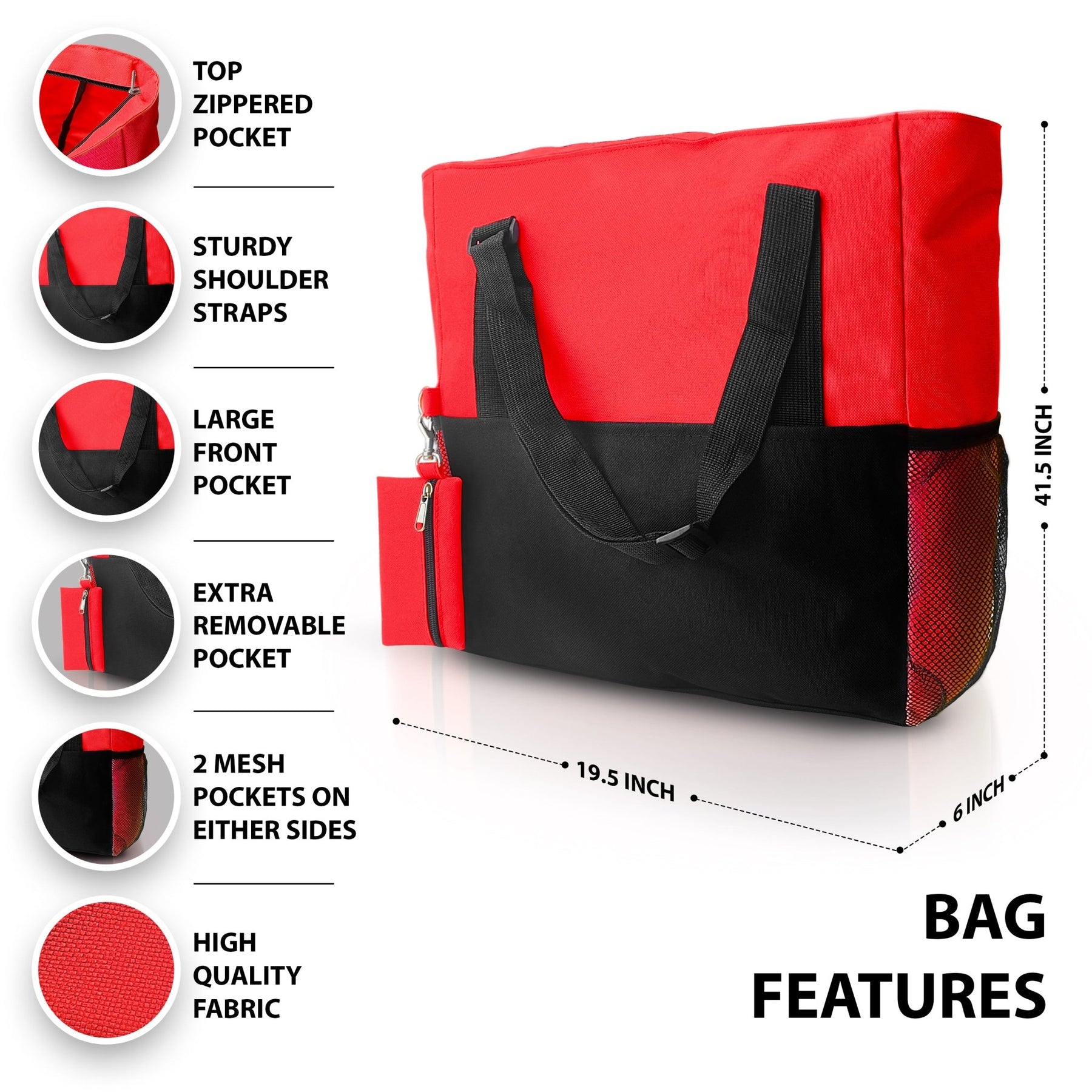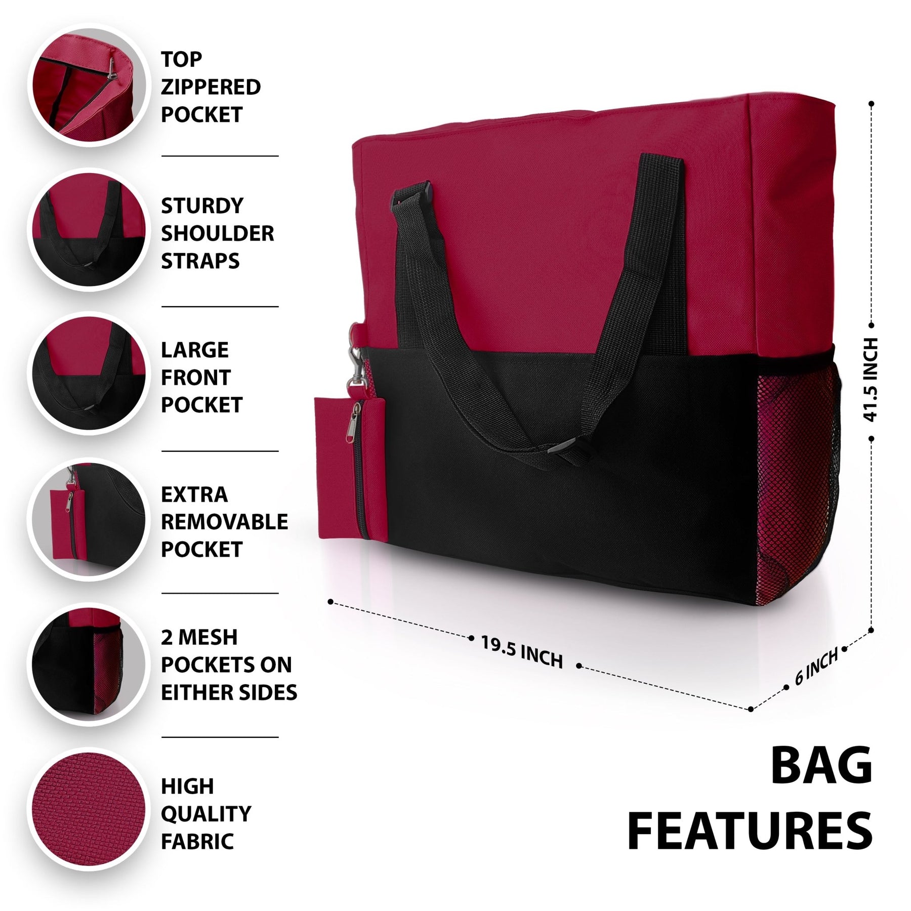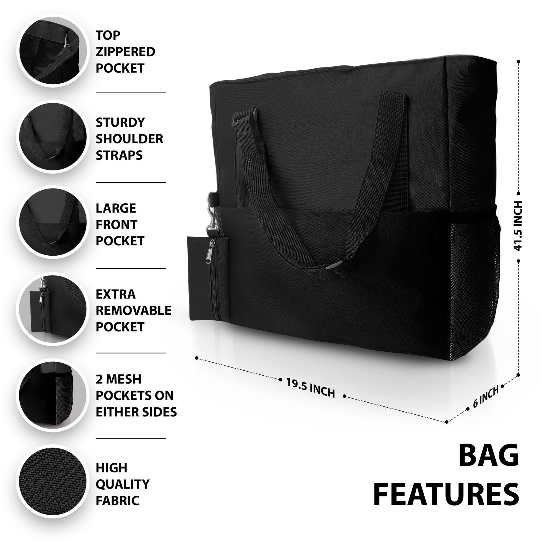 Smart Organization Eliminate the clutter. The tote features multiple compartments to keep your tools and personal items sorted. It includes a secure main compartment, two mesh side pockets for water bottles, and a quick-access mini side slot perfect for keys, phones, or ID badges.