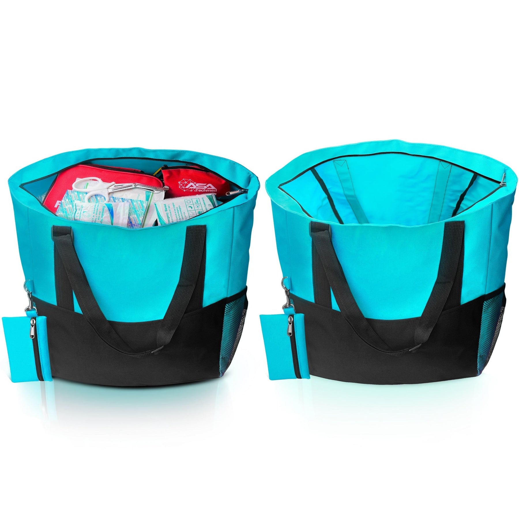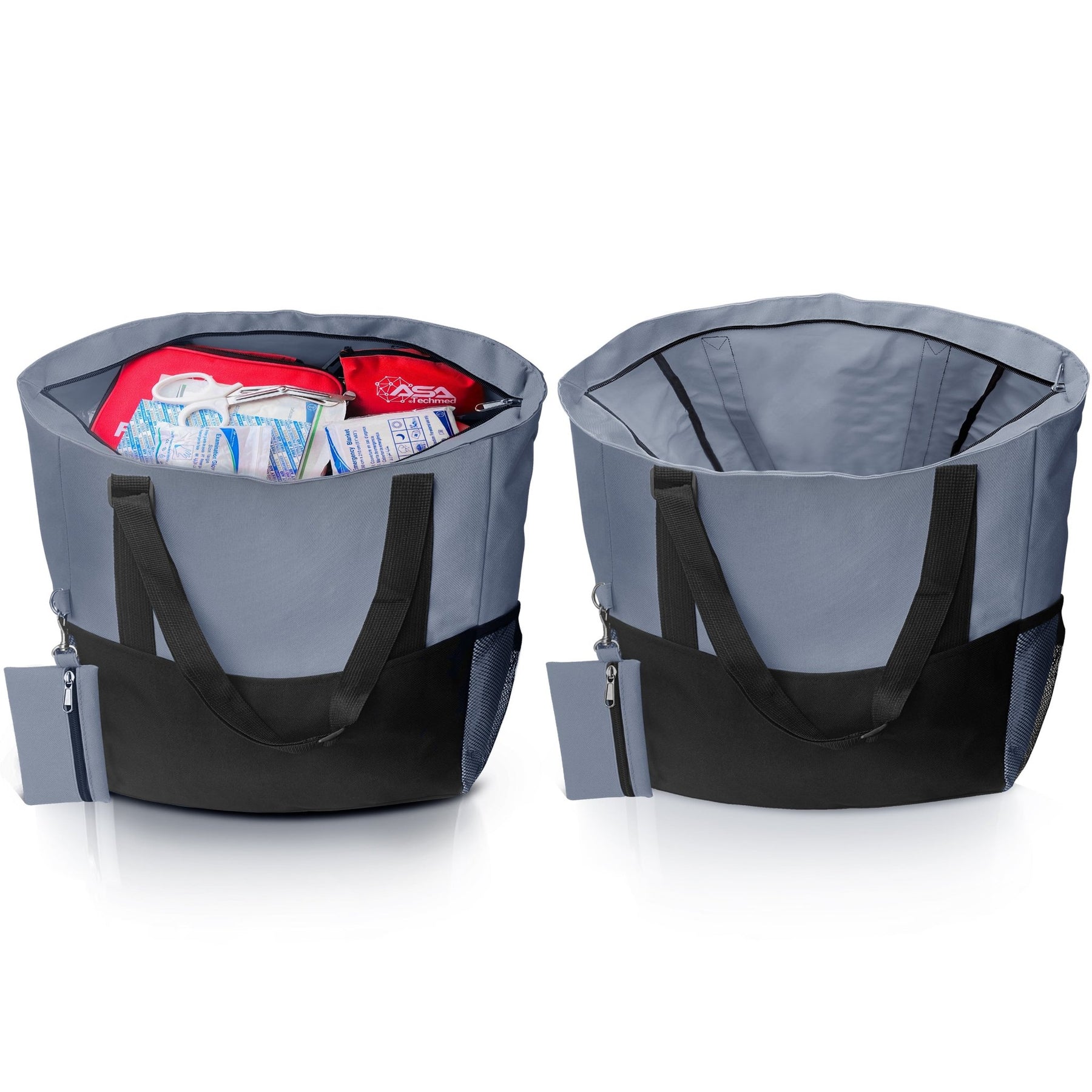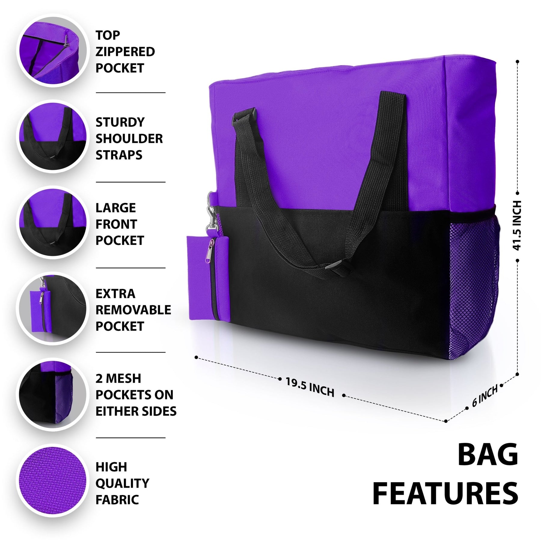 Smart Organization Eliminate the clutter. The tote features multiple compartments to keep your tools and personal items sorted. It includes a secure main compartment, two mesh side pockets for water bottles, and a quick-access mini side slot perfect for keys, phones, or ID badges.