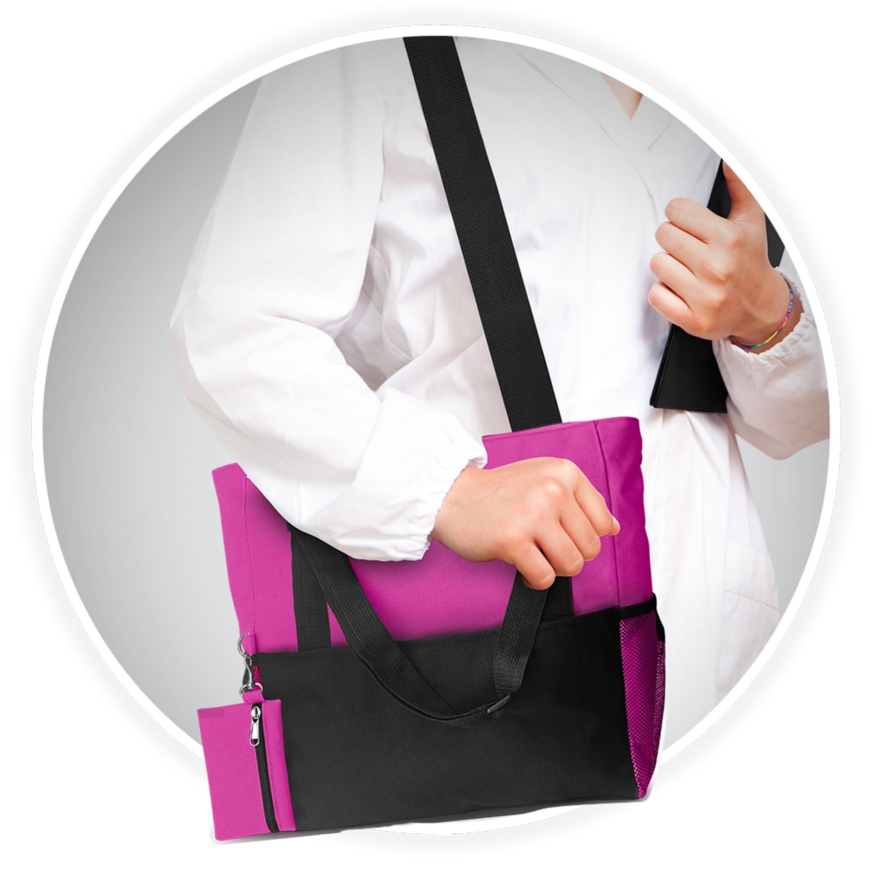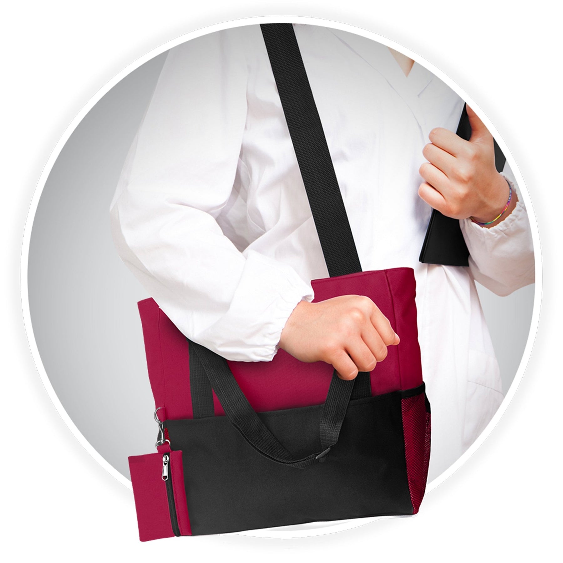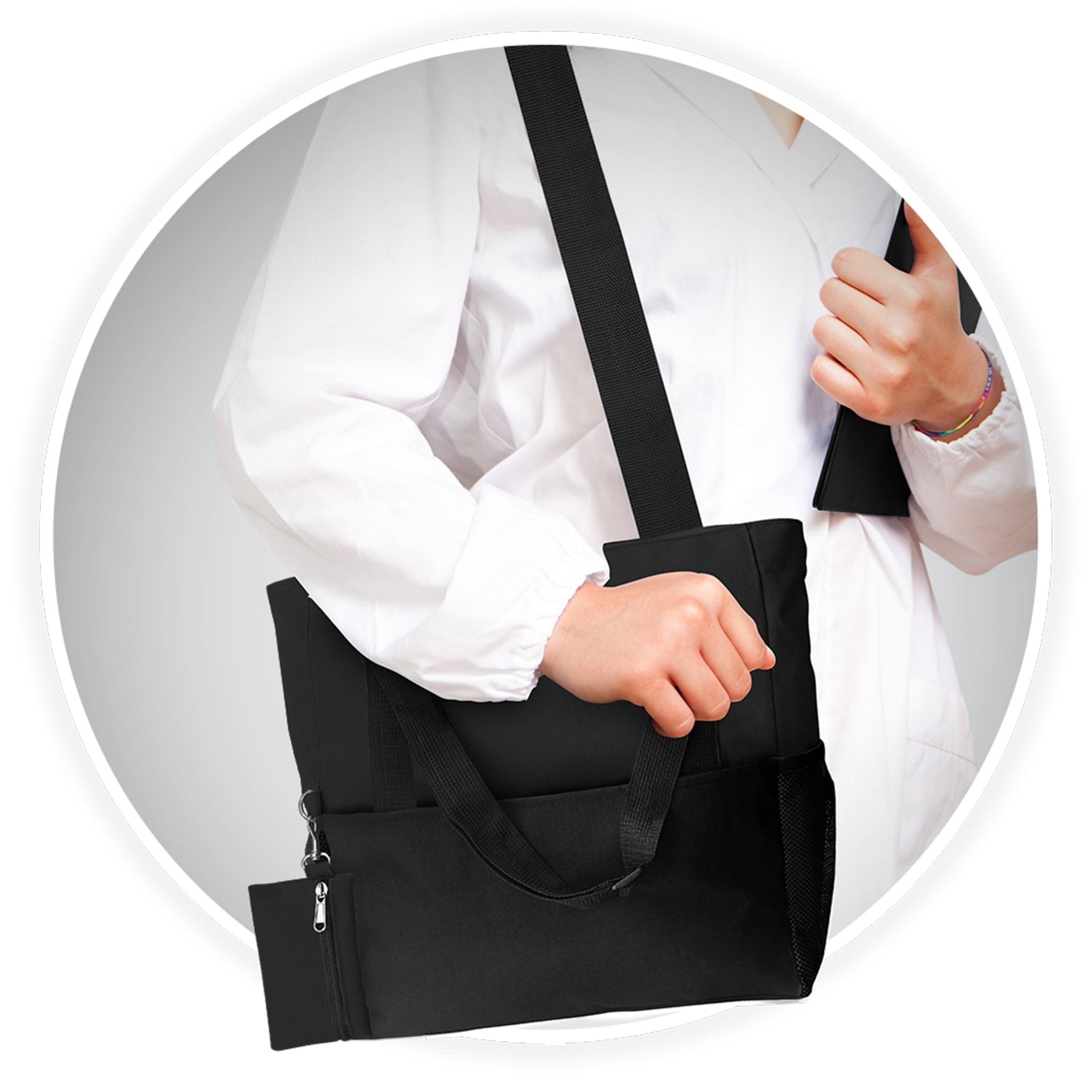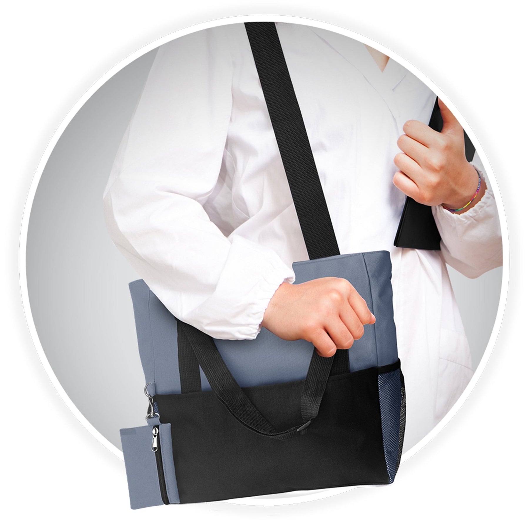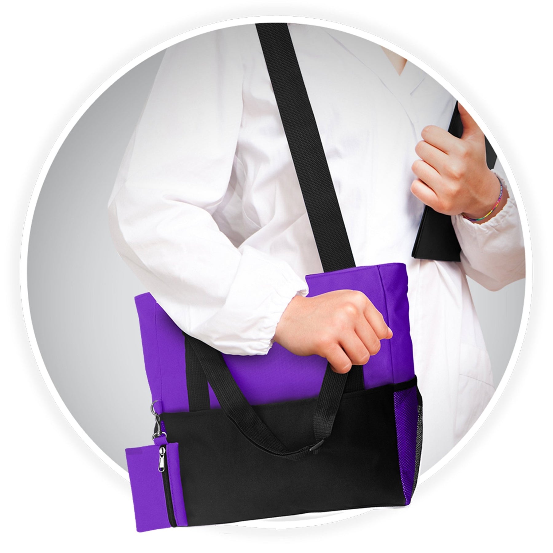 Style Meets Utility Stay organized on the go with the ASA Techmed Shoulder Travel Nursing Tote Bag. Designed for medical professionals, students, and commuters, this spacious carrier (18.5" L x 13" H x 7.5" W) provides ample room for work essentials, medical supplies, textbooks, or gym gear while remaining lightweight and easy to carry.